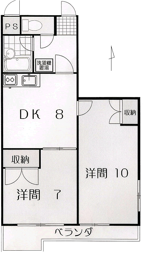 | 間取り | 1DK | 面積 | 54.95㎡ | 間取内訳 | 8畳DK、7畳洋間、10畳洋間 |