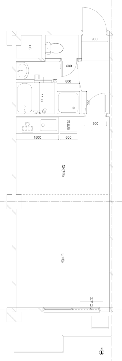 | 間取り | 1DK | 面積 | 33.98㎡ | 間取内訳 | 8畳DK、7畳洋間 |